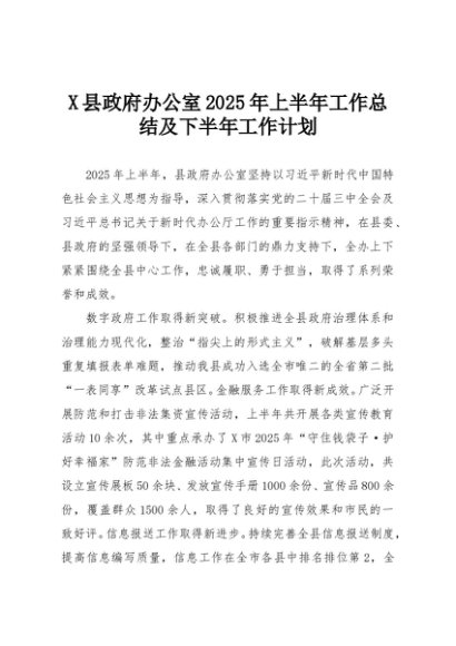【七哥公文】2025年:X县政府办公室2025年上半年工作总结及下半年工作计划+更多免费公文+VX:QiGeGongWen2024