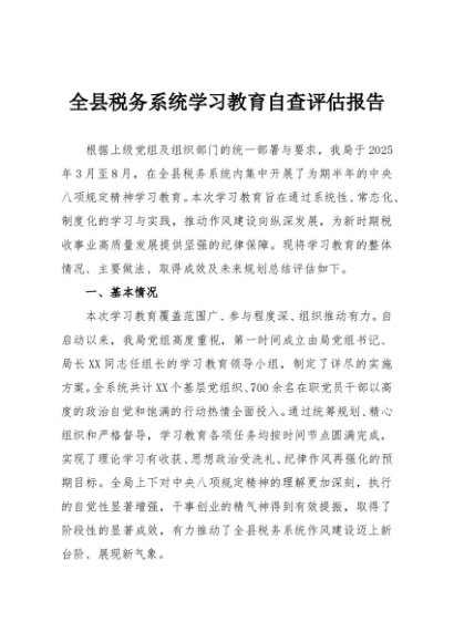 / 【七哥公文】2025年:全县税务系统学习教育自查评估报告+更多免费公文+VX:QiGeGongWen2024