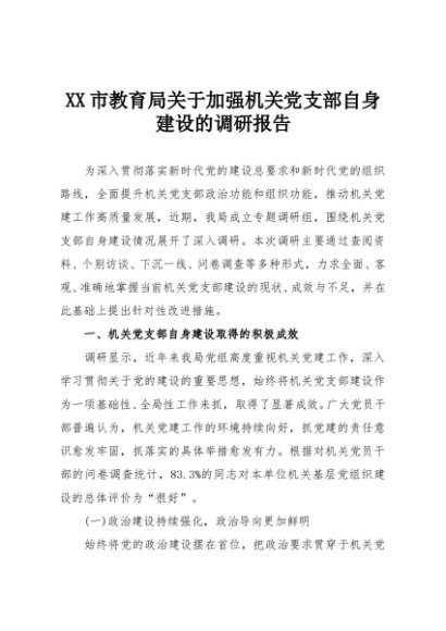 / 【七哥公文】2025年:XX市教育局关于加强机关党支部自身建设的调研报告+更多免费公文+VX:QiGeGongWen2024