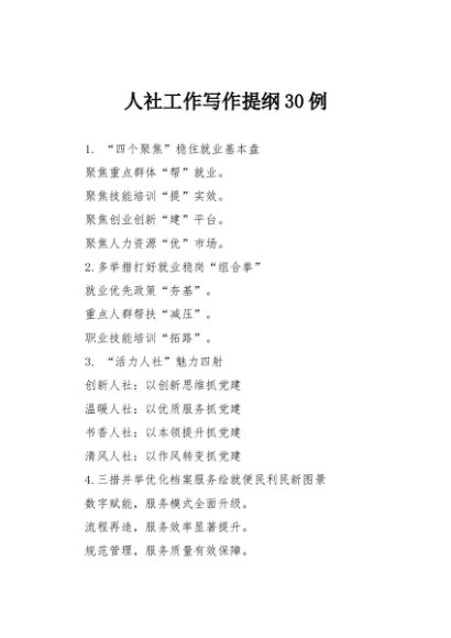 / 【七哥公文】2025年:人社工作写作提纲30例+更多免费公文+VX:QiGeGongWen2024