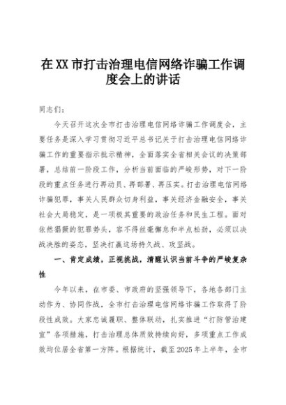 / 【七哥公文】2025年:在XX市打击治理电信网络诈骗工作调度会上的讲话+更多免费公文+VX:QiGeGongWen2024