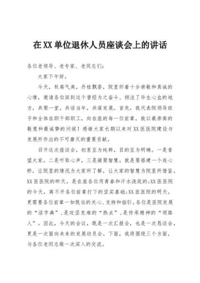 / 【七哥公文】2025年:在XX单位退休人员座谈会上的讲话+更多免费公文+VX:QiGeGongWen2024