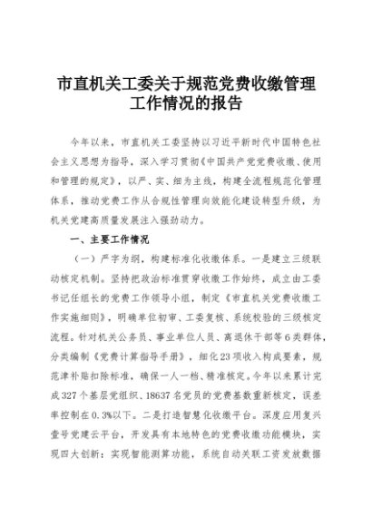 / 【七哥公文】2025年:市直机关工委关于规范党费收缴管理工作情况的报告+更多免费公文+VX:QiGeGongWen2024