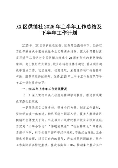 / 【七哥公文】2025年:XX区供销社2025年上半年工作总结及下半年工作计划+更多免费公文+VX:QiGeGongWen2024