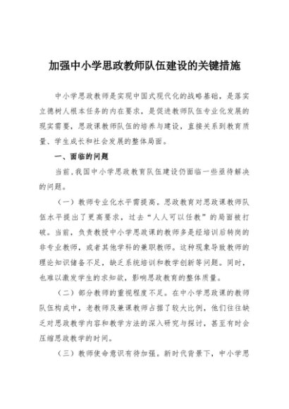 / 【七哥公文】2025年:加强中小学思政教师队伍建设的关键措施+更多免费公文+VX:QiGeGongWen2024