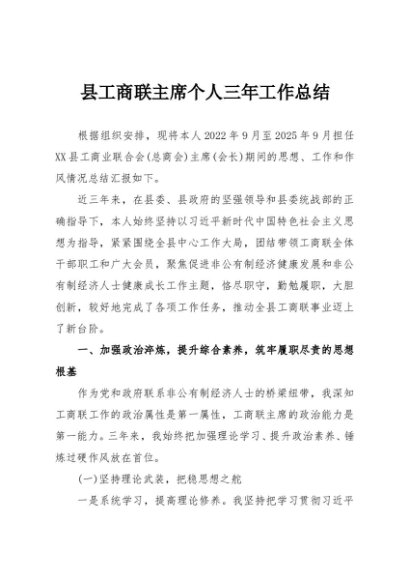 / 【七哥公文】2025年:县工商联主席个人三年工作总结+更多免费公文+VX:QiGeGongWen2024