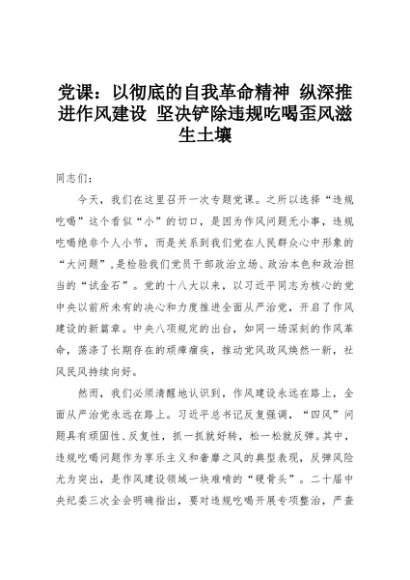 【七哥公文】2025年:党课:以彻底的自我革命精神 纵深推进作风建设 坚决铲除违规吃喝歪风滋生土壤+更多免费公文+VX:QiGeGongWen2024