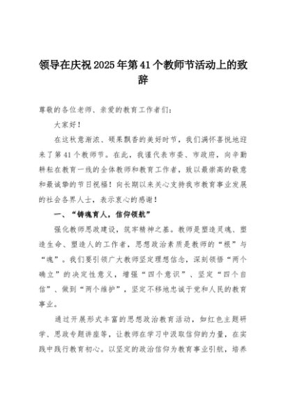 / 【七哥公文】2025年:领导在庆祝第41个教师节活动上的致辞+更多免费公文+VX:QiGeGongWen2024