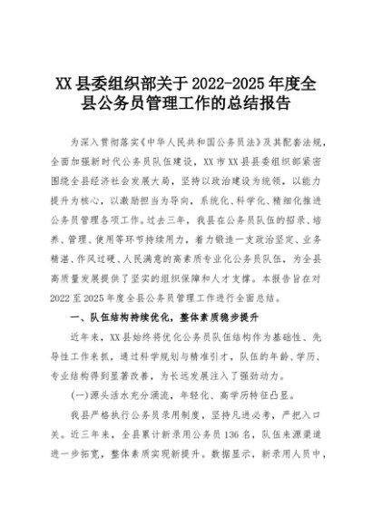 【七哥公文】2025年:XX县委组织部关于2022-2025年度全县公务员管理工作的总结报告+更多免费公文+VX:QiGeGongWen2024