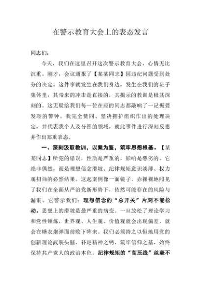 / 【七哥公文】2025年:在警示教育大会上的表态发言+更多免费公文+VX:QiGeGongWen2024