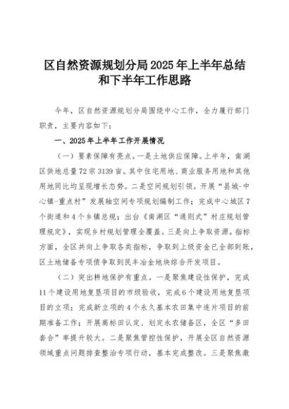 【七哥公文】2025年:区自然资源规划分局2025年上半年总结和下半年工作思路+更多免费公文+VX:QiGeGongWen2024