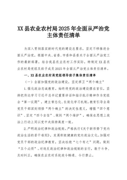 / 【七哥公文】2025年:XX县农业农村局2025年全面从严治党主体责任清单+更多免费公文+VX:QiGeGongWen2024