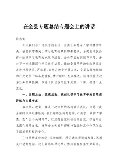 / 【七哥公文】2025年:在全县专题总结专题会上的讲话+更多免费公文+VX:QiGeGongWen2024