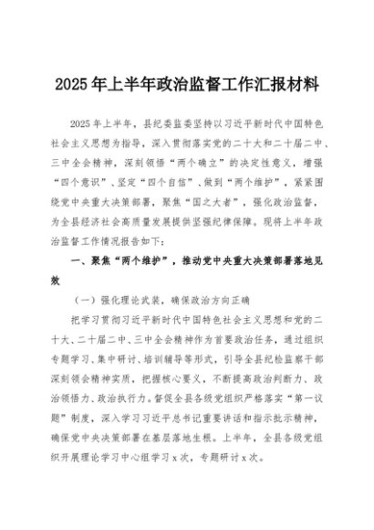 / 【七哥公文】2025年:2025年上半年政治监督工作汇报材料+更多免费公文+VX:QiGeGongWen2024