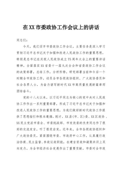 / 【七哥公文】2025年:在XX市委政协工作会议上的讲话+更多免费公文+VX:QiGeGongWen2024