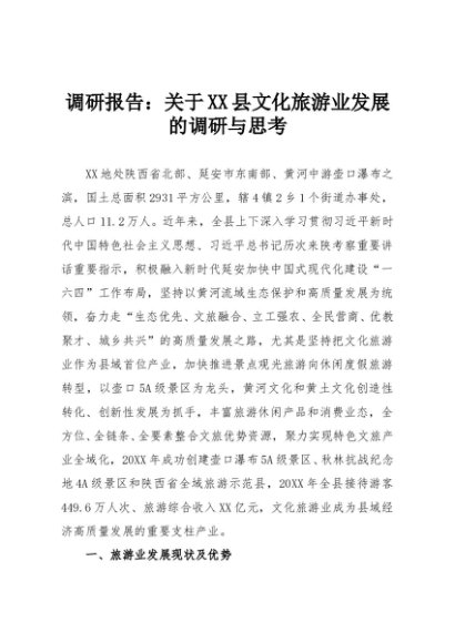 【七哥公文】2025年:调研报告:关于XX县文化旅游业发展的调研与思考+更多免费公文+VX:QiGeGongWen2024