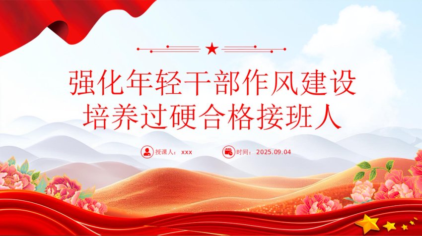 【七哥公文】2025年:强化年轻干部作风建设培养过硬合格接班人PPT微党课+更多免费公文+VX:QiGeGongWen2024
