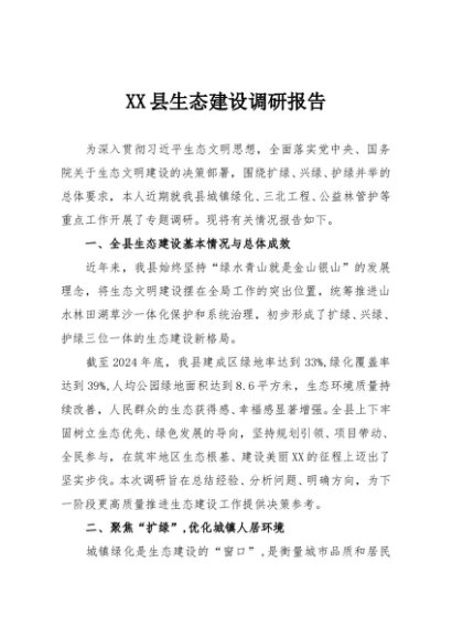 / 【七哥公文】2025年:XX县生态建设调研报告+更多免费公文+VX:QiGeGongWen2024