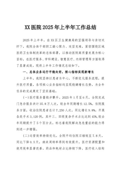 / 【七哥公文】2025年:XX医院2025年上半年工作总结+更多免费公文+VX:QiGeGongWen2024