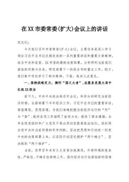 / 【七哥公文】2025年:在XX市委常委(扩大)会议上的讲话+更多免费公文+VX:QiGeGongWen2024