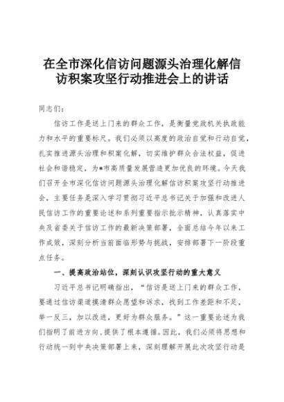 【七哥公文】2025年:在全市深化信访问题源头治理化解信访积案攻坚行动推进会上的讲话+更多免费公文+VX:QiGeGongWen2024