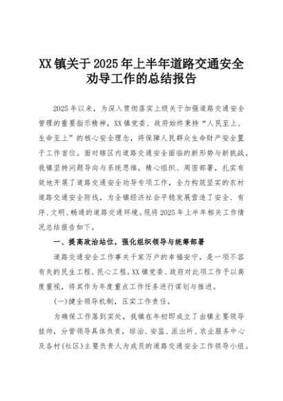 【七哥公文】2025年:XX镇关于2025年上半年道路交通安全劝导工作的总结报告+更多免费公文+VX:QiGeGongWen2024