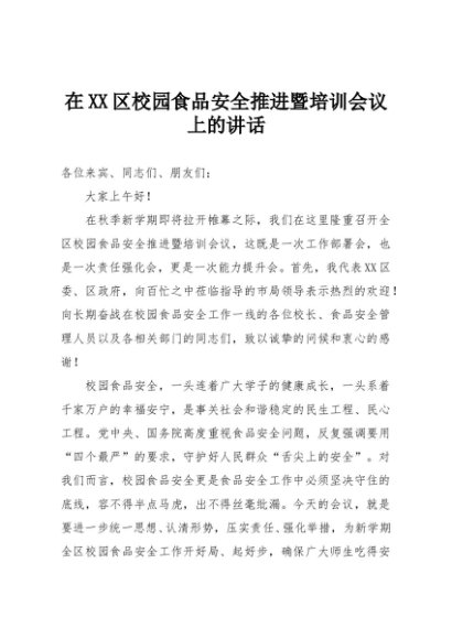 / 【七哥公文】2025年:在XX区校园食品安全推进暨培训会议上的讲话+更多免费公文+VX:QiGeGongWen2024