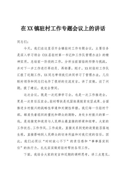 / 【七哥公文】2025年:在XX镇驻村工作专题会议上的讲话+更多免费公文+VX:QiGeGongWen2024