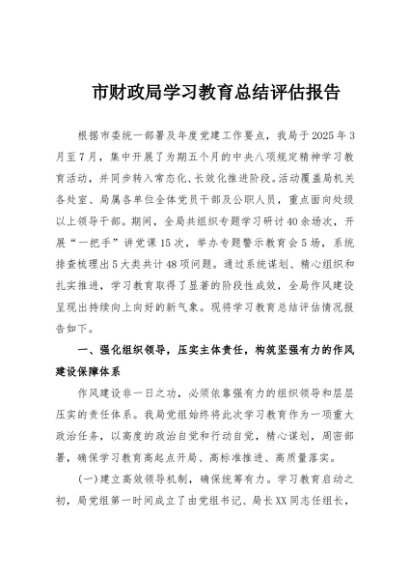/ 【七哥公文】2025年:市财政局学习教育总结评估报告+更多免费公文+VX:QiGeGongWen2024