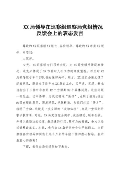 / 【七哥公文】2025年:XX局领导在巡察组巡察局党组情况反馈会上的表态发言+更多免费公文+VX:QiGeGongWen2024