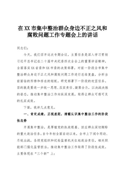 【七哥公文】2025年:在XX市集中整治群众身边不正之风和腐败问题工作专题会上的讲话+更多免费公文+VX:QiGeGongWen2024