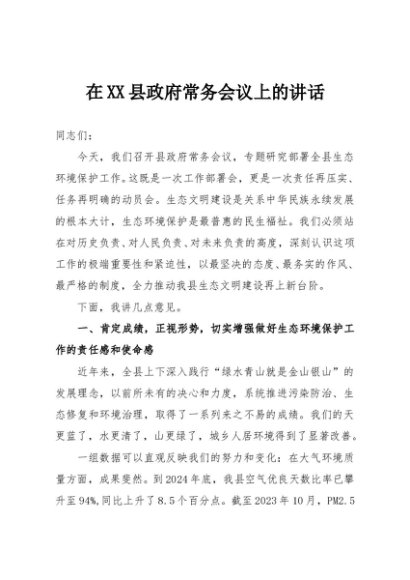 / 【七哥公文】2025年:在XX县政府常务会议上的讲话+更多免费公文+VX:QiGeGongWen2024