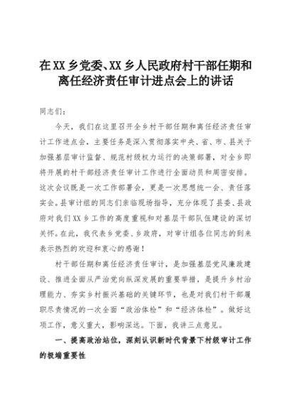 【七哥公文】2025年:在XX乡党委、XX乡人民政府村干部任期和离任经济责任审计进点会上的讲话+更多免费公文+VX:QiGeGongWen2024