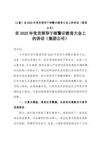 【七哥公文】2025年:(2篇)在2025年党员领导干部警示教育大会上的讲话(集团公司)+更多免费公文+VX:QiGeGongWen2024