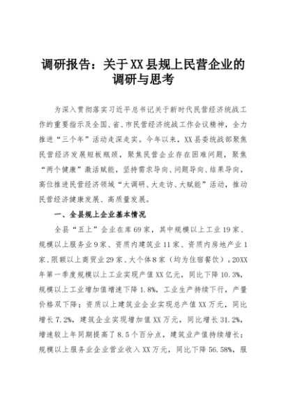 / 【七哥公文】2025年:调研报告:关于XX县规上民营企业的调研与思考+更多免费公文+VX:QiGeGongWen2024