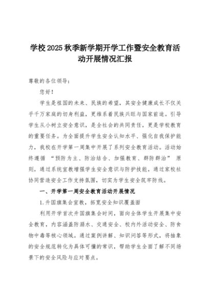 【七哥公文】2025年:学校2025秋季新学期开学工作暨安全教育活动开展情况汇报+更多免费公文+VX:QiGeGongWen2024