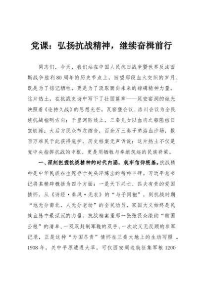 / 【七哥公文】2025年:党课:弘扬抗战精神,继续奋楫前行+更多免费公文+VX:QiGeGongWen2024