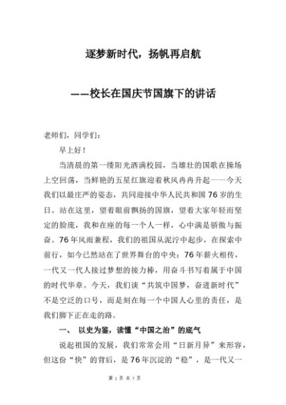 / 【七哥公文】2025年:校长在国庆节国旗下的讲话:逐梦新时代,扬帆再启航+更多免费公文+VX:QiGeGongWen2024