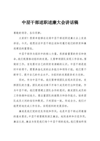 / 【七哥公文】2025年:中层干部述职述廉大会讲话稿+更多免费公文+VX:QiGeGongWen2024