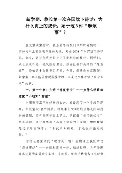 【七哥公文】2025年:新学期,校长第一次在国旗下讲话:为什么真正的成长,始于这3件“麻烦事”?+更多免费公文+VX:QiGeGongWen2024