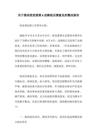 / 【七哥公文】2025年:关于落实校党委第X巡察组反馈意见的整改报告+更多免费公文+VX:QiGeGongWen2024