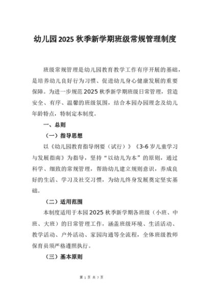 / 【七哥公文】2025年:幼儿园2025秋季新学期班级常规管理制度+更多免费公文+VX:QiGeGongWen2024