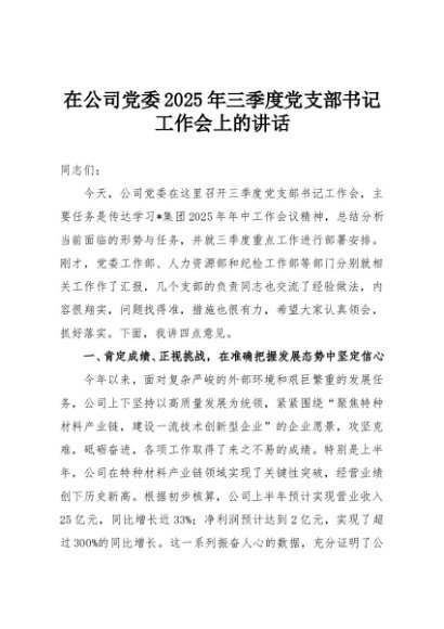 / 【七哥公文】2025年:在公司党委2025年三季度党支部书记工作会上的讲话+更多免费公文+VX:QiGeGongWen2024