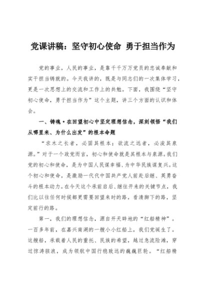 【七哥公文】2025年:党课讲稿:坚守初心使命 勇于担当作为+更多免费公文+VX:QiGeGongWen2024