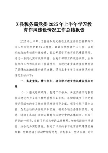 【七哥公文】2025年:X县税务局党委2025年上半年学习教育作风建设情况工作总结报告+更多免费公文+VX:QiGeGongWen2024