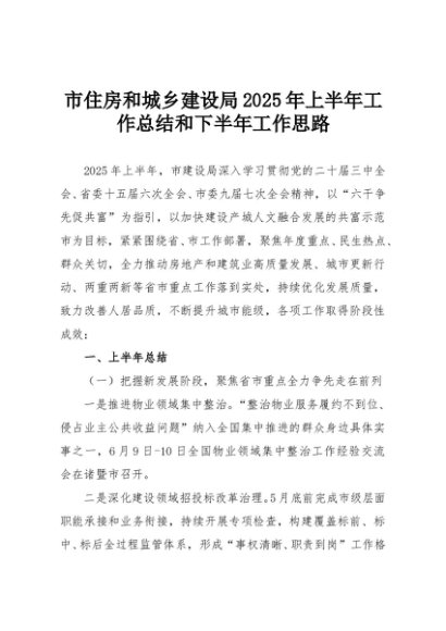 【七哥公文】2025年:市住房和城乡建设局2025年上半年工作总结和下半年工作思路+更多免费公文+VX:QiGeGongWen2024