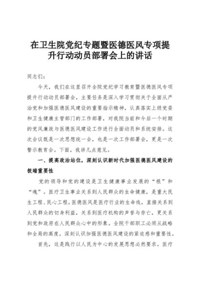 【七哥公文】2025年:在卫生院党纪专题暨医德医风专项提升行动动员部署会上的讲话+更多免费公文+VX:QiGeGongWen2024