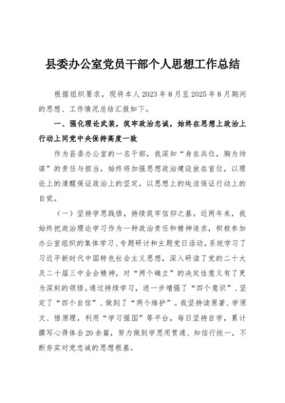 / 【七哥公文】2025年:县委办公室党员干部个人思想工作总结+更多免费公文+VX:QiGeGongWen2024