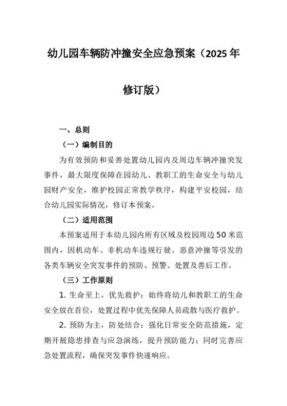 / 【七哥公文】2025年:幼儿园车辆防冲撞安全应急预案(2025年修订版)+更多免费公文+VX:QiGeGongWen2024