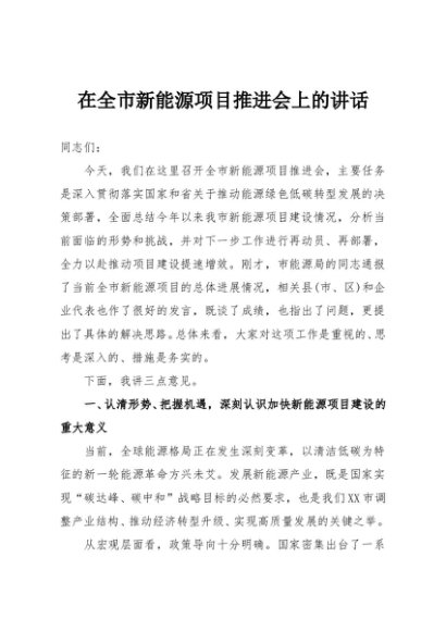 / 【七哥公文】2025年:在全市新能源项目推进会上的讲话+更多免费公文+VX:QiGeGongWen2024